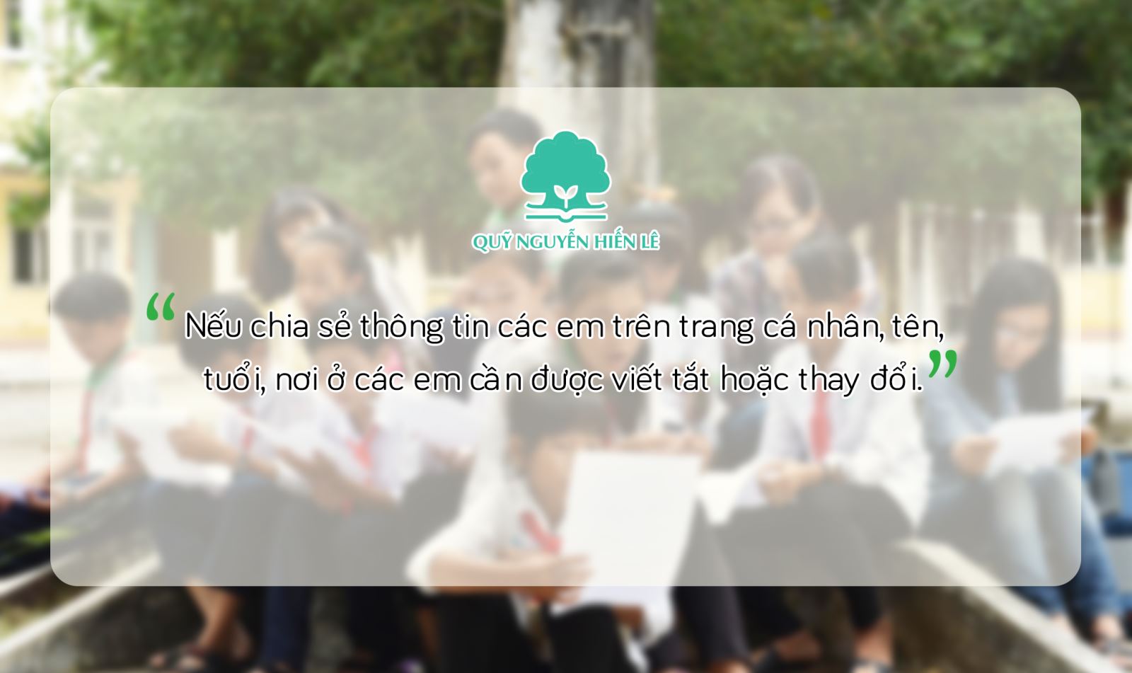 - Nếu chia sẻ thông tin các em trên trang cá nhân, tên, tuổi, nơi ở các em cần được viết tắt hoặc thay đổi.