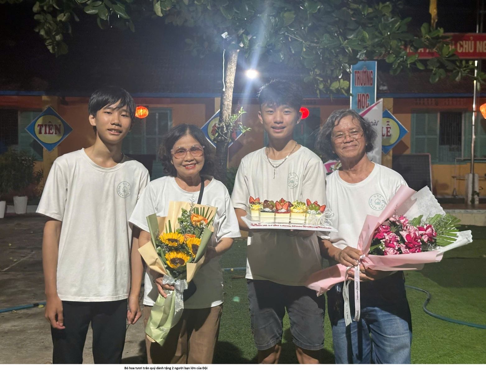 Một hình ảnh đẹp biết mấy khi cả Đội rủ nhau mua hoa, mua bánh để trao tặng cùng những lời tri ân ĐPV - 2 người bạn lớn, 2 thầy cô đã đi cùng Đội suốt 7 năm qua.