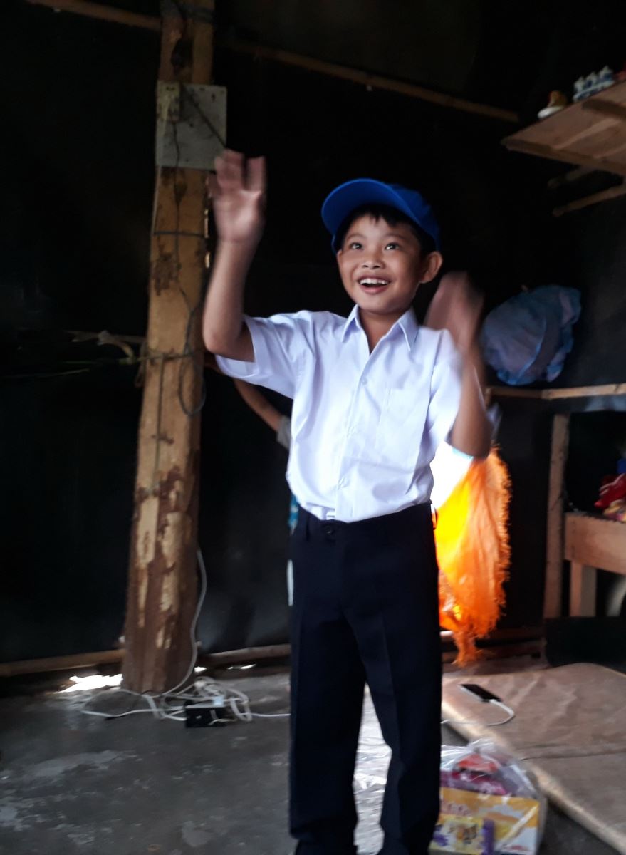 Gia đình em từ Biển Hồ về dựng mái nhà tạm này đã được 5 năm. Năm nay em lên lớp 2, học trường tiểu học Phước Minh (xã Phước Minh, huyện Dương Minh Châu, Tây Ninh). Ngày tựu trường này, em đã có bộ quần áo mới tinh do các cô chú đồng hành với Quỹ Nguyễn Hiến Lê sắm sửa. Em còn có, giày, cặp, nón, áo mưa, truyện và nhiều học cụ “lấp lánh” khác. Em vui lắm luôn!