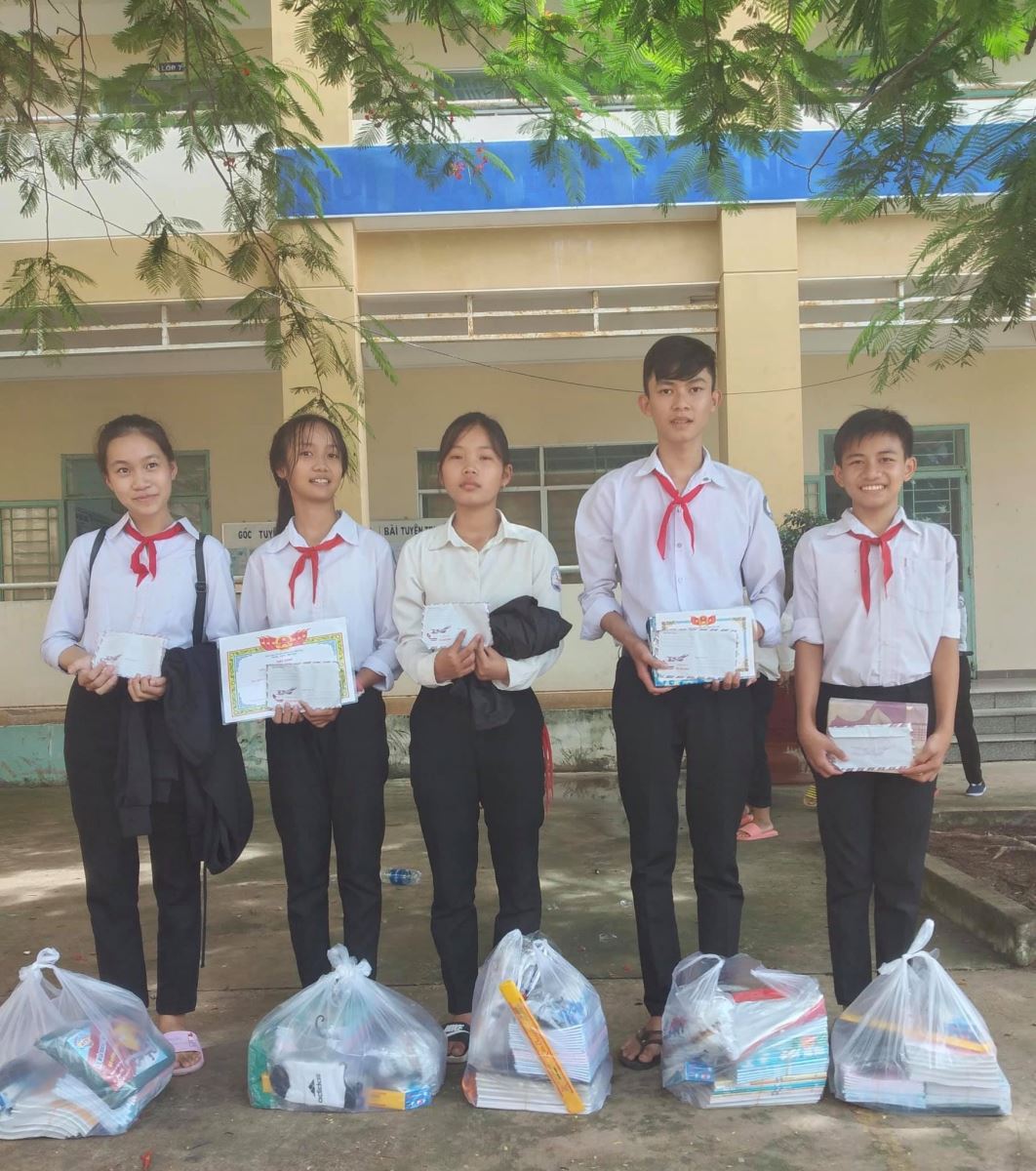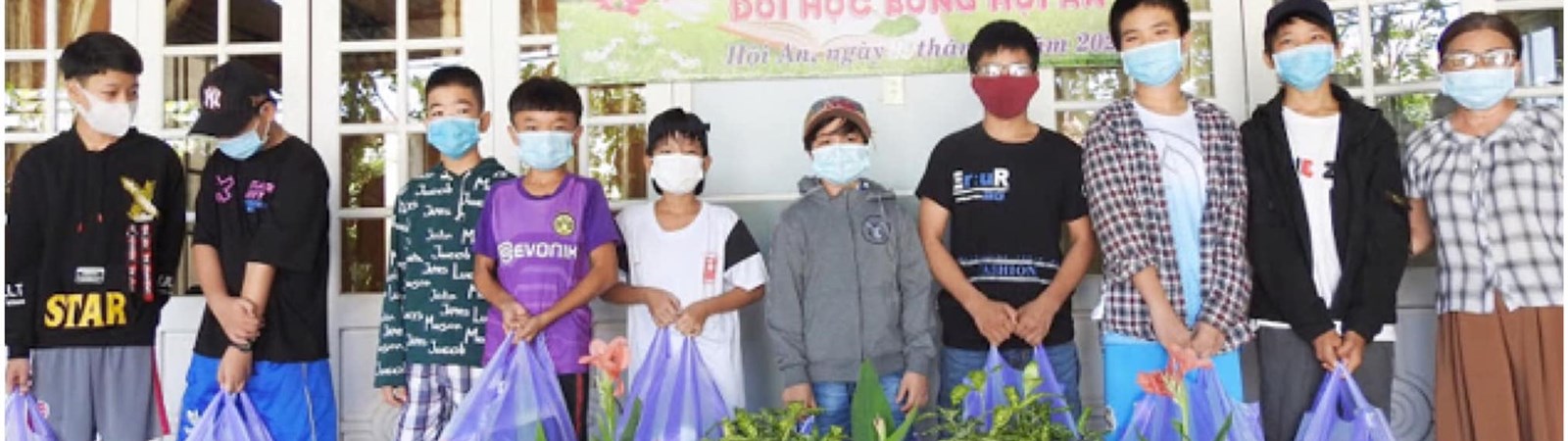Năm nay hai đội học bổng Duy Xuyên, Hội An (Quảng Nam) đều nằm trong tâm dịch, nên các ĐPV đã sắm quà cho các em, rồi lấy nhà mình làm nơi trao quà. Nhìn những hình ảnh gửi về, khẩu trang che kín mặt, chúng mình kịp thấy bọn nhỏ lớn phổng qua chiều cao. Nghe ĐPV kể, rồi đọc nhật ký ĐPV gửi, biết các em vui khi gặp nhau lắm, chỉ muốn quàng vai bá cổ chơi đùa thật đã nhưng chỉ được nhận quà nhanh rồi ai về nhà nấy thôi. Nghe mà thương.