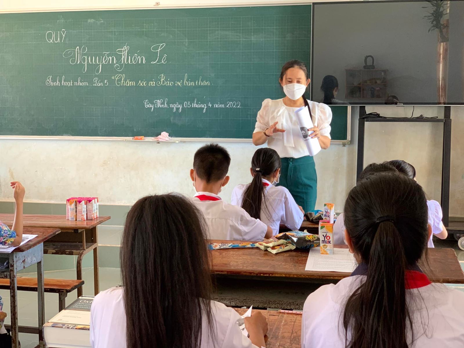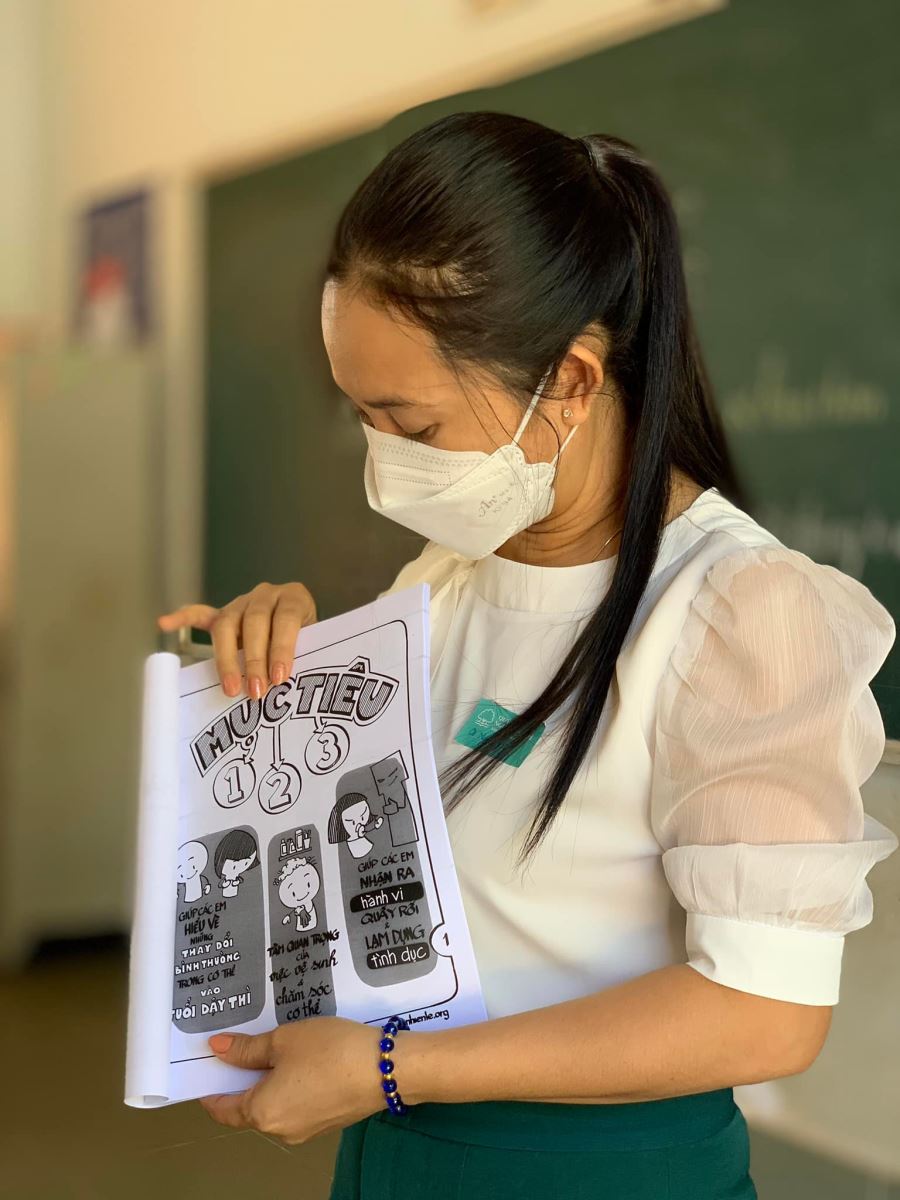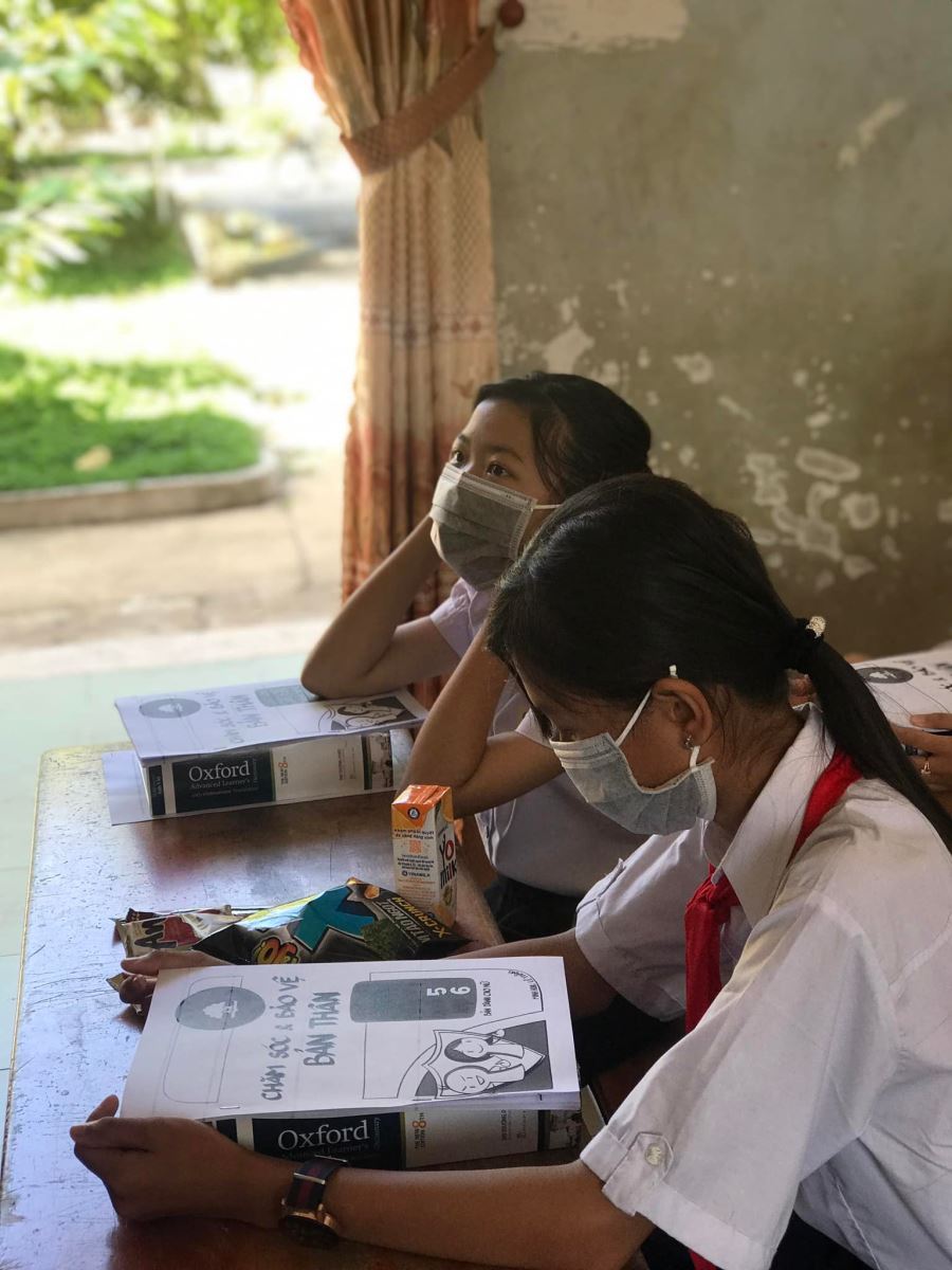 Chúng mình đã có buổi sinh hoạt nhóm rất mini cùng 6 em (các em còn lại do nhà quá xa, bố mẹ, ông bà “mắc đi mần” nên không thể đưa tới) với chủ đề “Chăm sóc và bảo vệ bản thân”. Với sự dẫn dắt của ĐPV, bạn lớn - bạn nhỏ chúng mình đã trò chuyện rất nhiều điều “khó nói”, “ngại chia sẻ” về tâm sinh lý tuổi dậy thì. Nào là sự thay đổi của cơ thể, nào là cách chăm sóc cơ thể, trân quý, bảo vệ cơ thể mình tránh bị xâm hại...