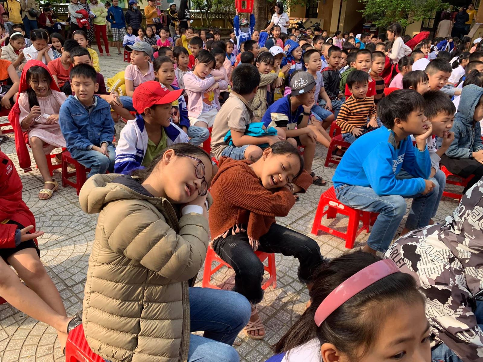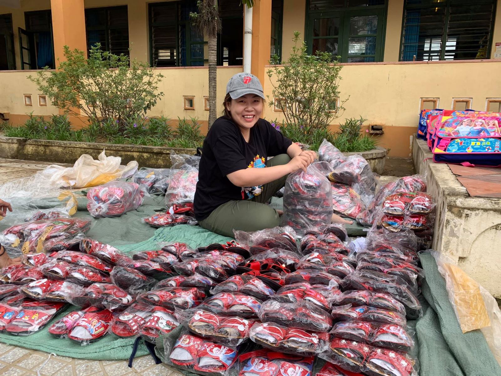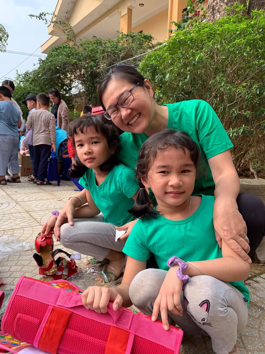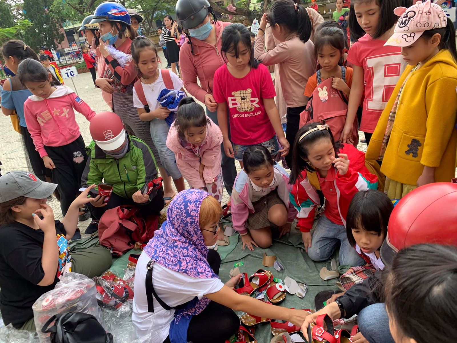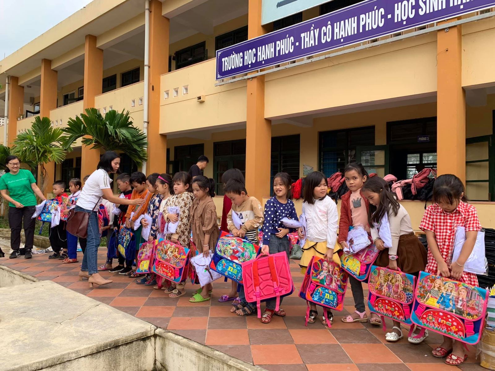 Cảm ơn nhà trường đã đặt may đồng phục kịp thời (chỉ trong vòng 1 tuần sau khi Quỹ gửi chi phí) để hôm nay các em nhận được cùng cặp, giày, dụng cụ học tập, áo mưa, nón...