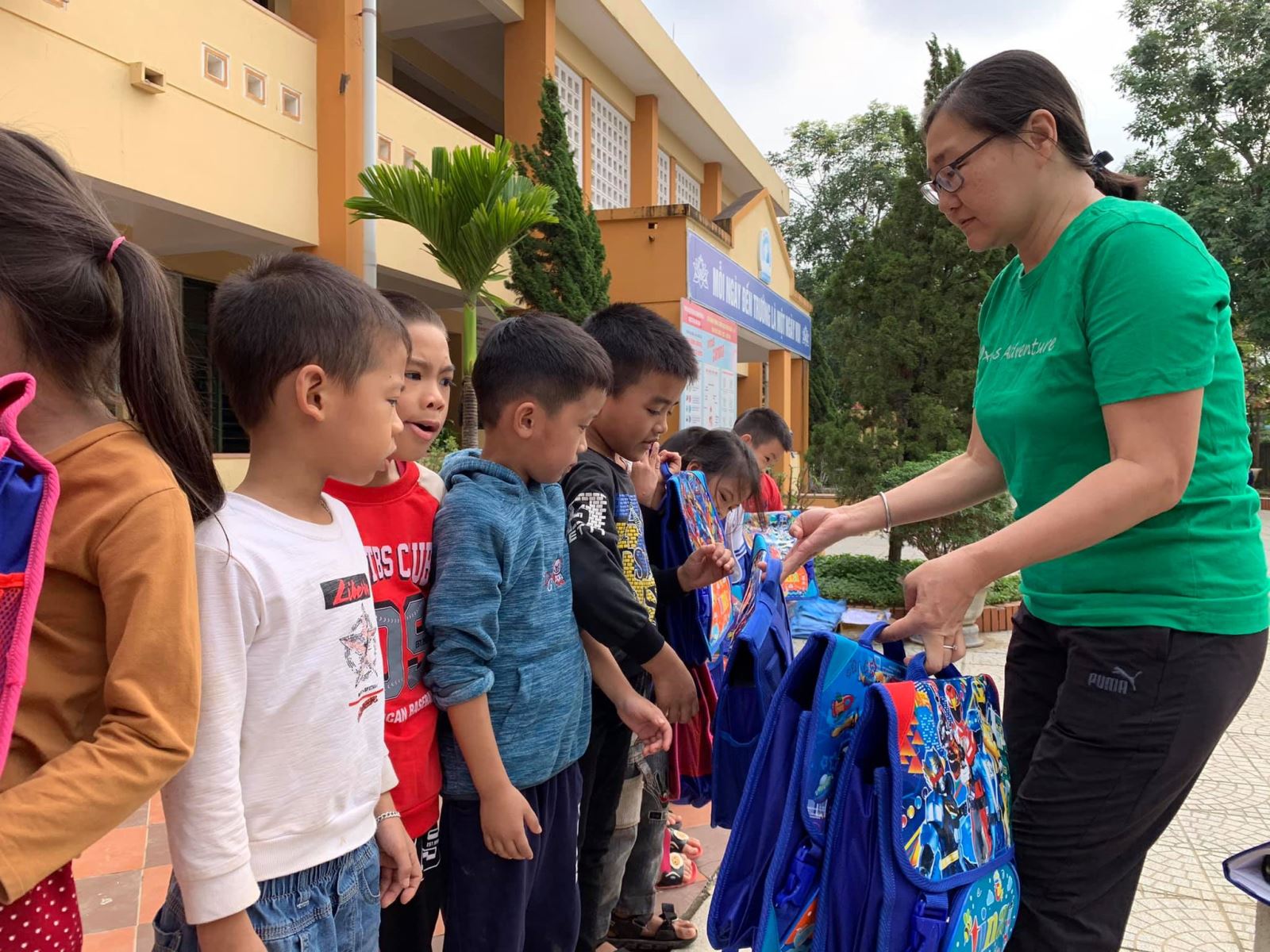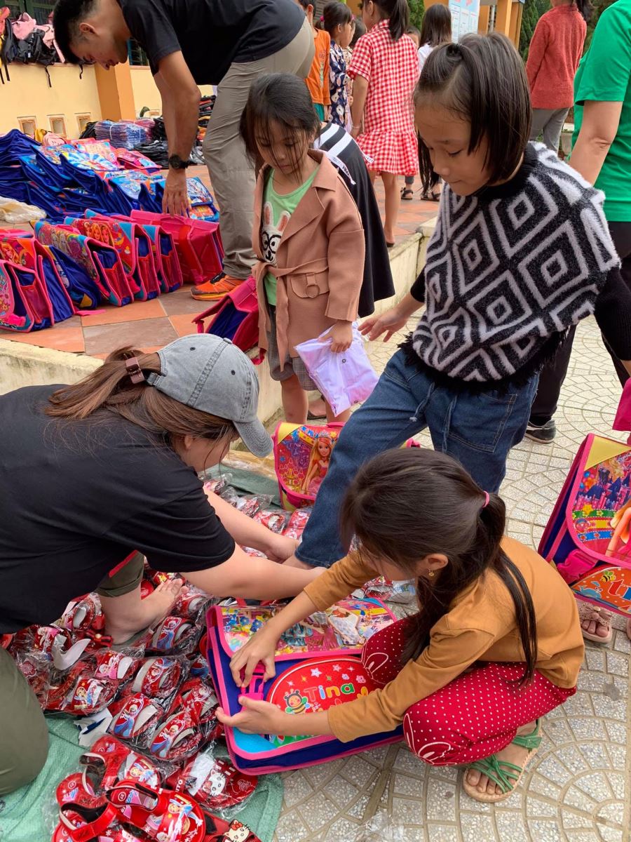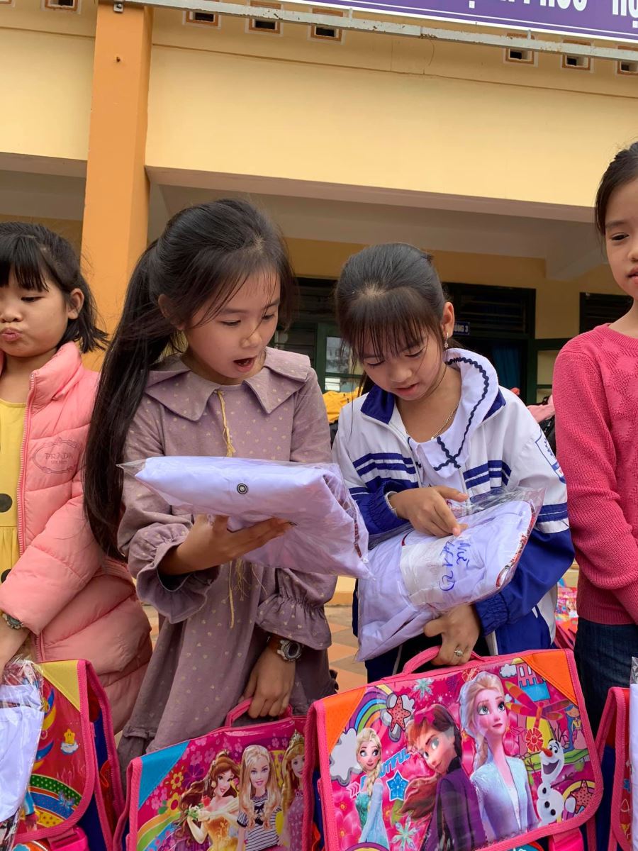 406 phần quà đã được trao trong hôm nay với thật nhiều ánh mắt lấp lánh, với nhiều thán từ “Đã ghê hè!”, “Thích quá!”, “Ba lô đẹp hầy!”...