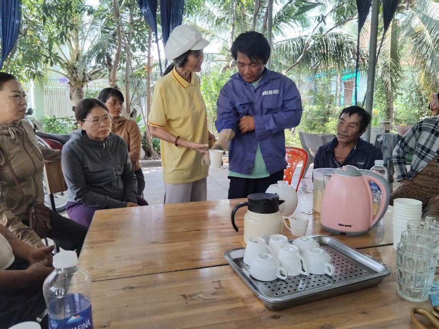 Thăm và tặng quà cho những cô chú khuyết tật, các em học từ cô Thanh Nhị - điều phối viên của đội - bài học về lòng nhân hậu, về niềm vui khi trái tim ta rộng mở, biết chọn có mặt bên những ai cần tương trợ.