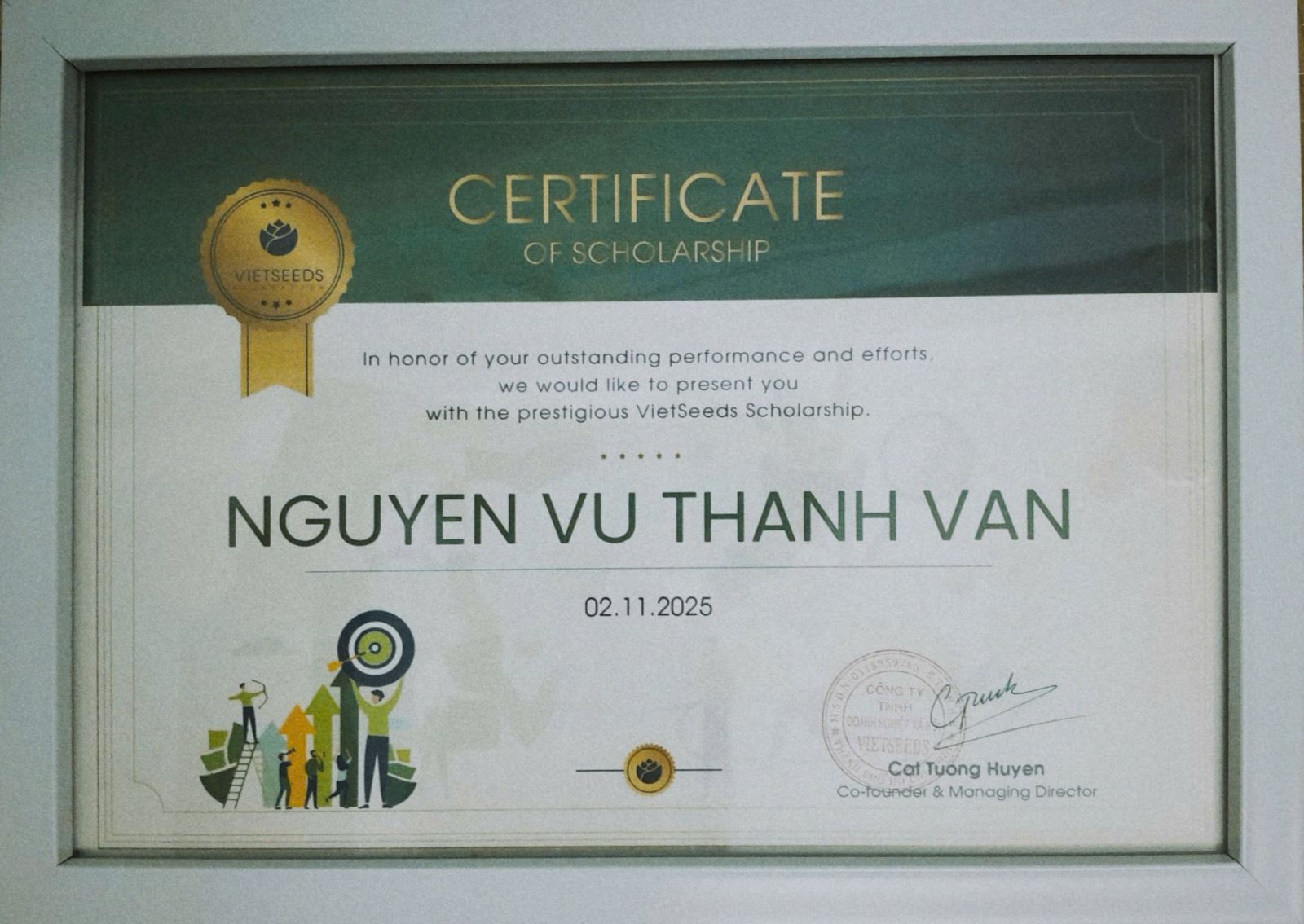 Chúc mừng em Thanh Vân trở thành thành viên thứ hai của gia đình học bổng Nguyễn Hiến Lê được trao học bổng VietSeeds sau khi em đậu ĐH Bách Khoa TP.HCM.