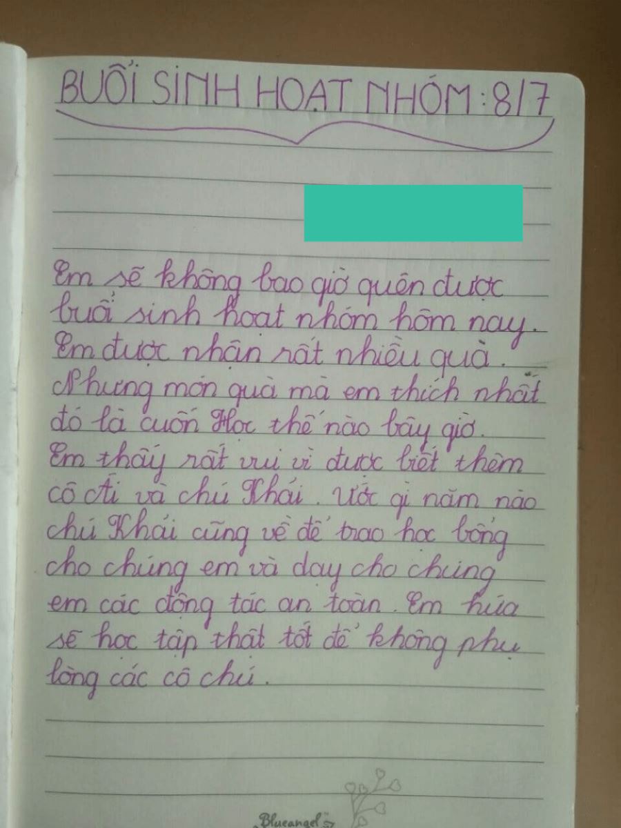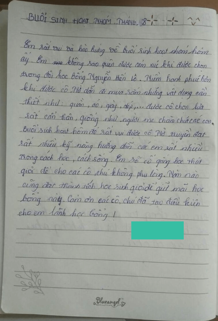 Một bạn nhỏ viết về "người bạn lớn" của em - điều phối viên của quỹ - sau khi cùng nhau mua sắm hành trang cho năm mới: "cô chọn lựa rất cẩn thận, giống như người mẹ chăm chút các con".