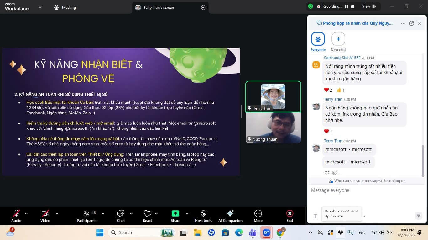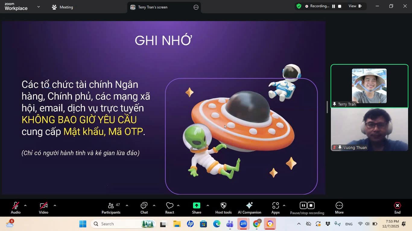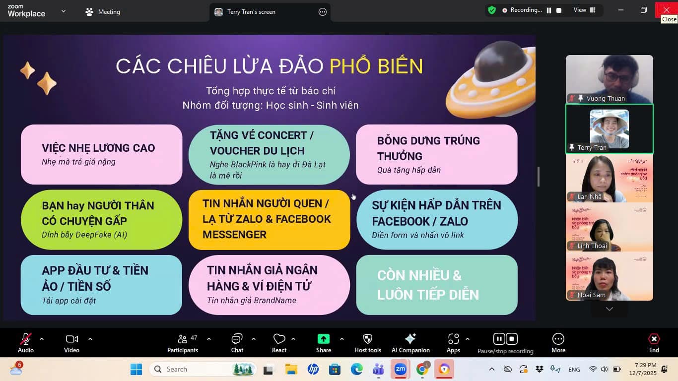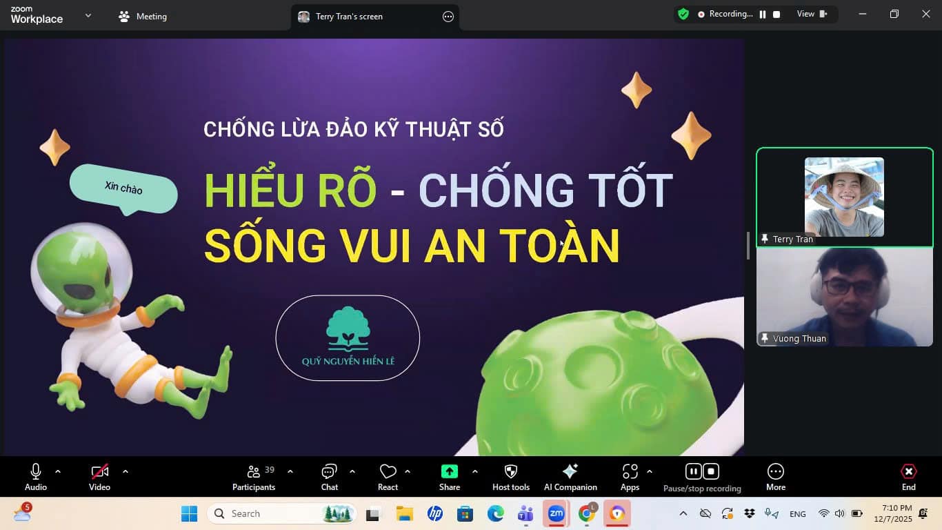 Tối Chủ Nhật (7-12-2025), trong buổi chia sẻ trực tuyến “Nhận biết và phòng tránh bẫy lừa đảo”, các em của gia đình Học bổng Nguyễn Hiến Lê cùng con em bạn đồng hành đã “bỏ túi” nhiều thông tin hữu ích, thú vị từ hai “chú” khách mời xịn sò Vương Thuấn và Thanh Trực.