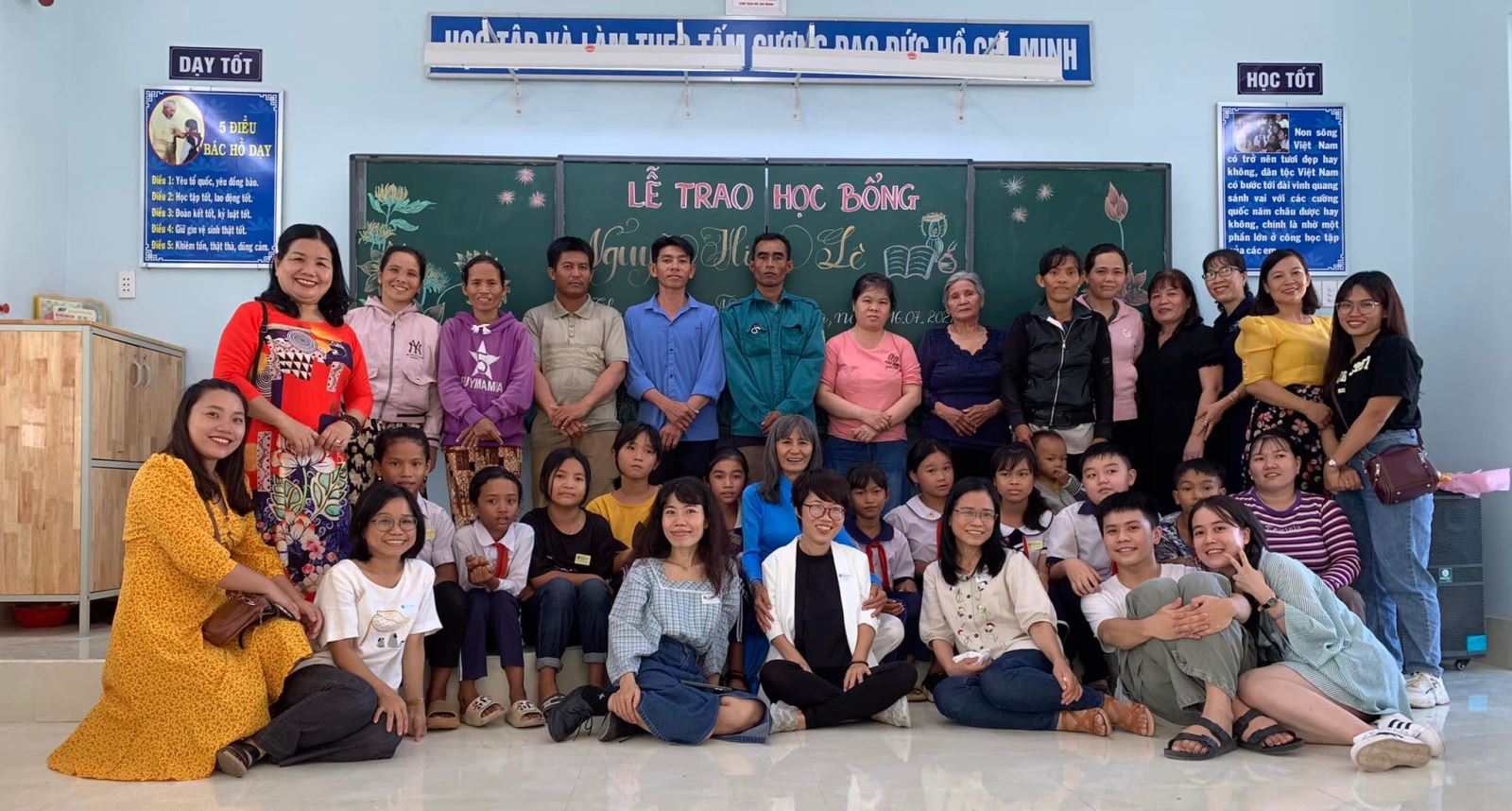 Chúng mình cảm động khi thấy các em trong làng đi nhận học bổng mà cả làng cắt cử người dẫn đường vì sợ phụ huynh lóng ngóng chở các em đi lạc.