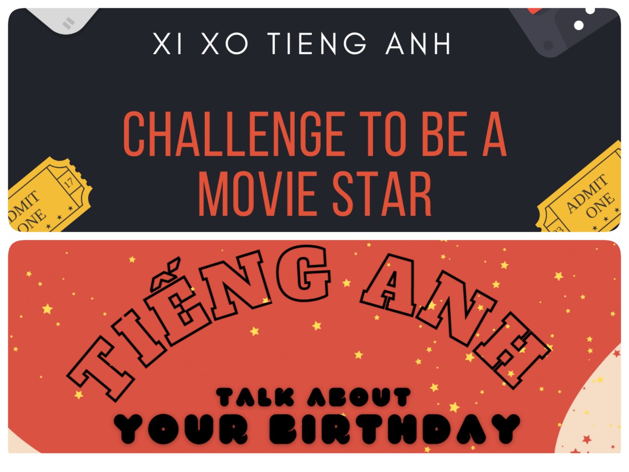 Gần đây nhất, các em đã rất hào hứng hóa thân 3-5 phút vào một vai diễn của một bộ phim mình yêu thích sau 10 ngày chuẩn bị, tìm hiểu kịch bản phim, từ mới trong thoại phim,... Trước đó, chủ đề về ngày sinh nhật cũng đã giúp các em ghi nhớ được nhiều từ vựng và cách diễn đạt sinh động một đề tài gần gũi.